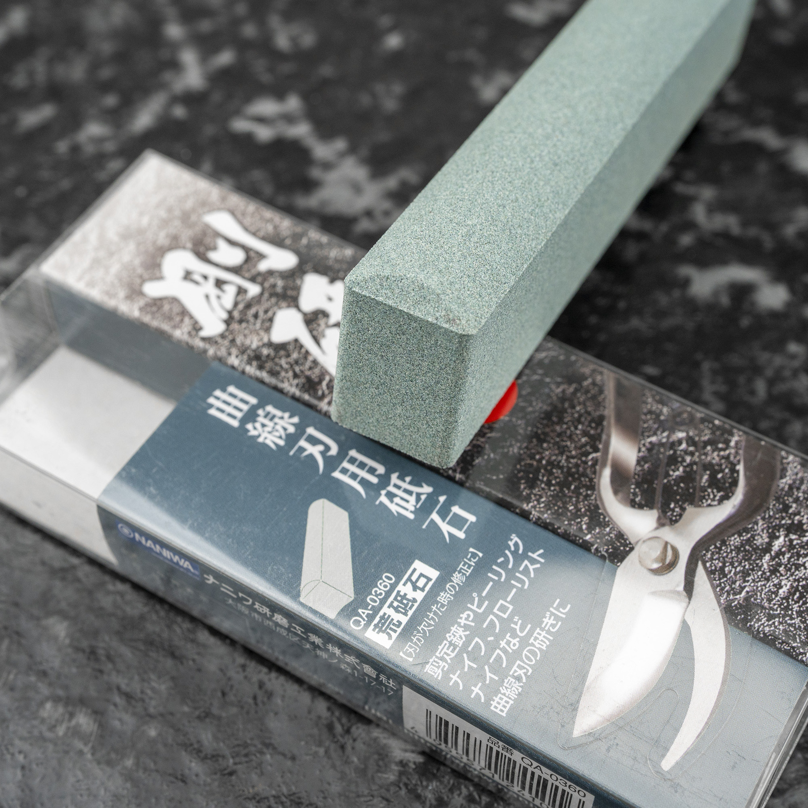 Kamień Naniwa Gouken o gradacji 220 przeznaczony do naprawy niewielkich uszkodzeń krawędzi tnącej. Specjalny profil z zaokrąglonym bokiem ułatwia ostrzenie zakrzywionych ostrzy, np. sekatorów czy noży paringowych. Przed użyciem należy moczyć w wodzie przez 3–10 minut.