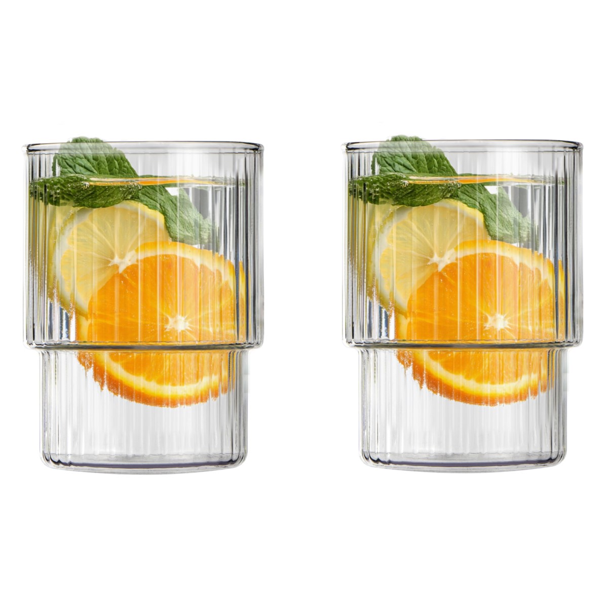 Elegancki zestaw dwóch ryflowanych szklanek LIVIO o pojemności 350 ml to stylowa i praktyczna propozycja do codziennego użytku. Wykonane z wysokiej jakości szkła borokrzemowego, charakteryzują się lekkością, trwałością oraz zwiększoną odpornością na zmiany temperatur.