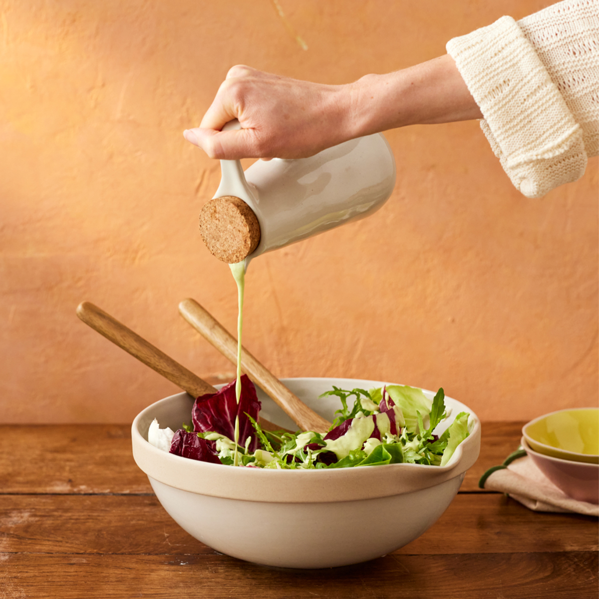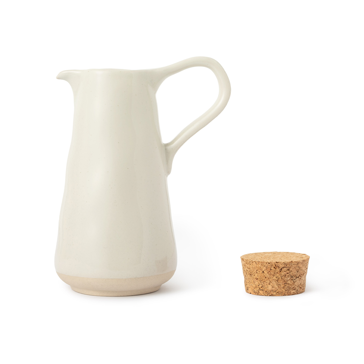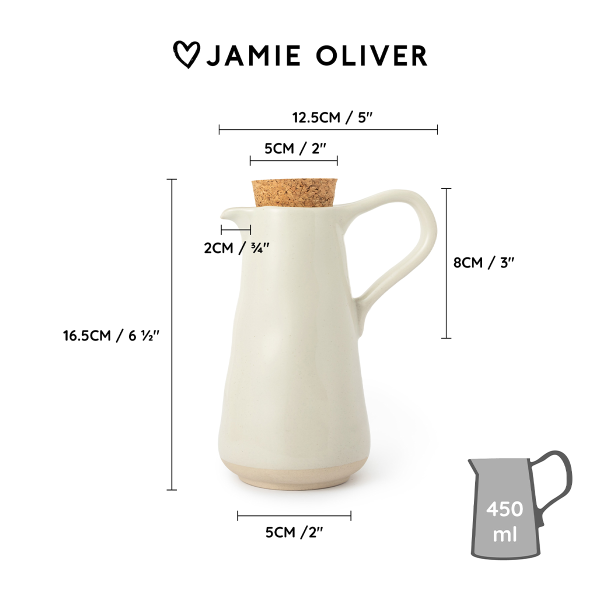 Ceramiczny dzbanek na oliwę o pojemności 450 ml przeznaczony do serwowania oliwy, sosów lub dressingów. Dołączony korek z naturalnego materiału z certyfikatem FSC pomaga zachować świeżość zawartości.