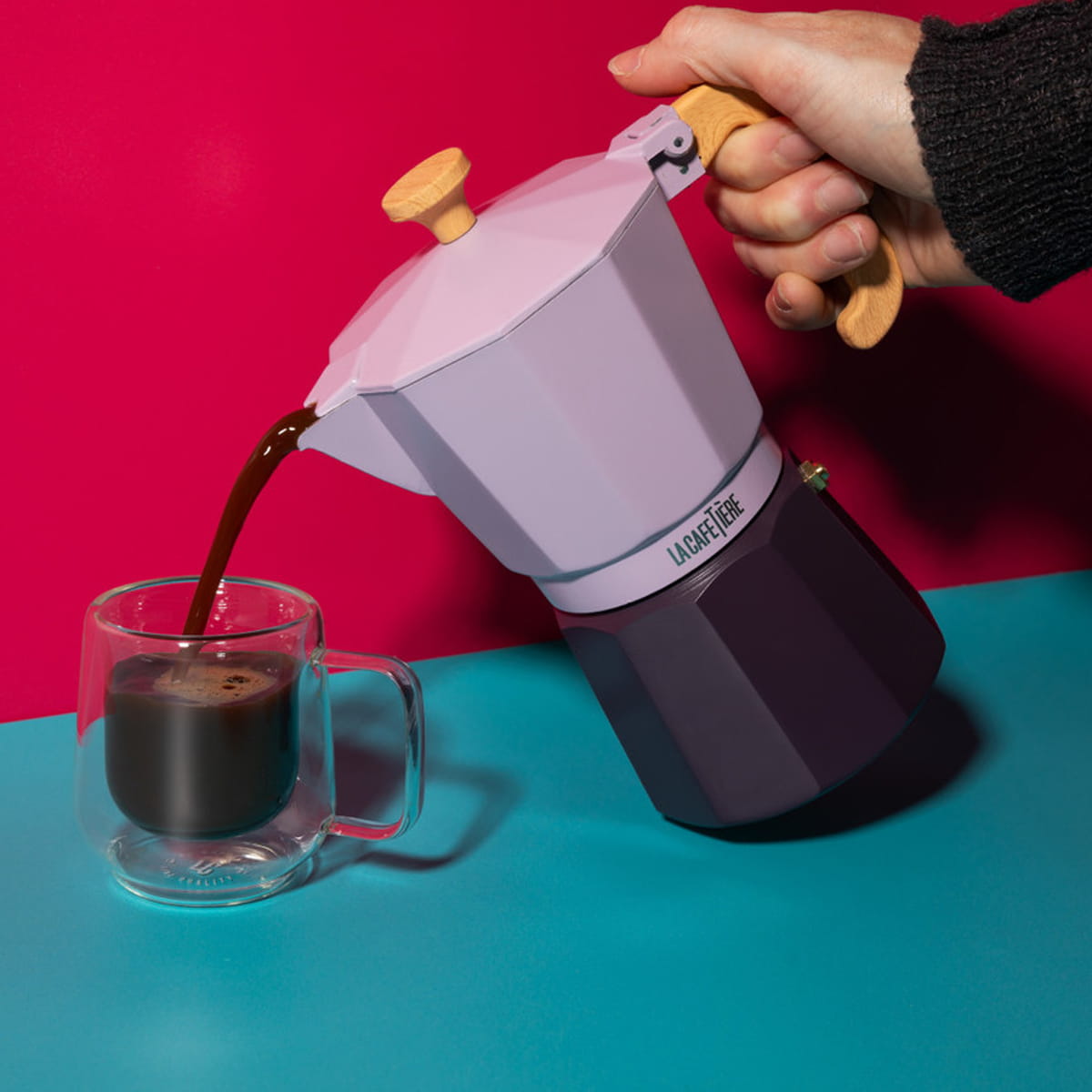 Klasyczna włoska moka Venice w niebanalnym dwukolorowym wydaniu. Aluminiowa, tradycyjna kawiarka w dwóch odcieniach niebieskiego, do parzenia aromatycznej kawy, idealna na 3 filiżanek espresso.