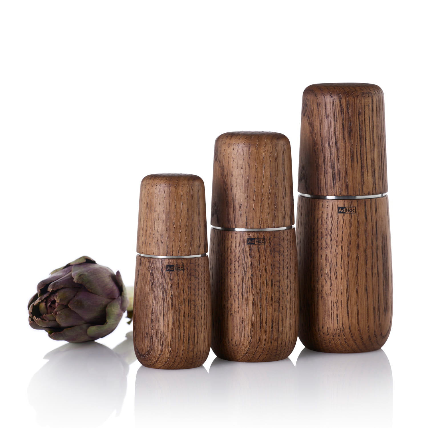 Młynek dostępny jest w różnych rozmiarach i rodzajach drewna: akacja, jasny i ciemny dąb.