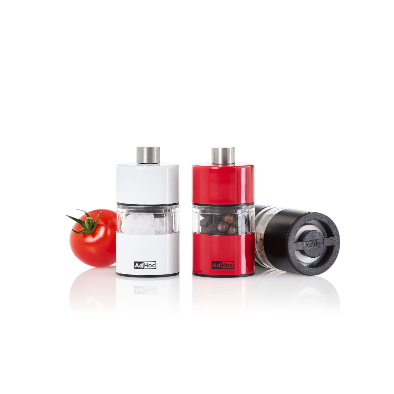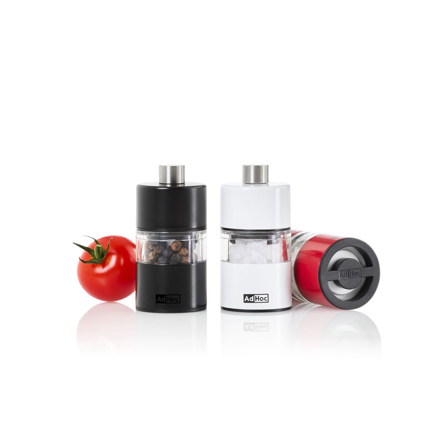 Młynek dostępny jest w wersji stalowej oraz w 3 kolorach: białym, czarnym i czerwonym.