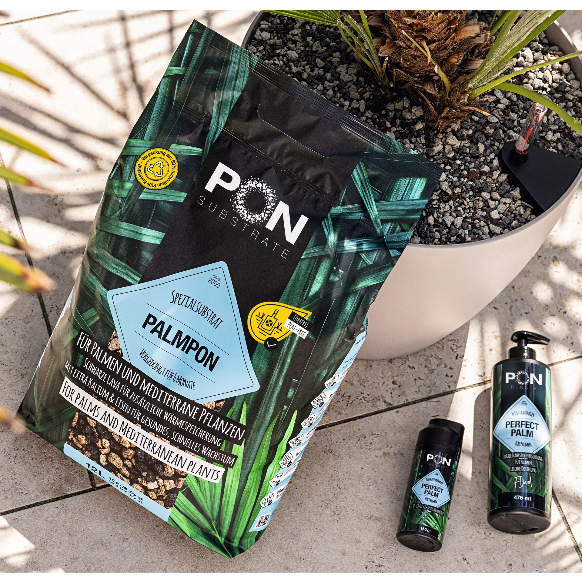 Wskazówka: Organiczno-mineralne podłoże roślinne PALMPON zapewnia palmom odpowiednią stabilność w pojemniku i zapobiega zaleganiu wody. Czarna lawa służy jako zbiornik ciepła.