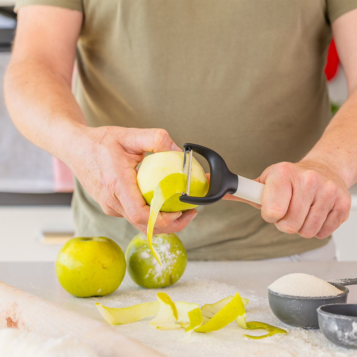 Dzięki ergonomicznemu uchwytowi obieraczka oferuje komfort użytkowania oraz możliwość pełnej kontroli podczas pracy.