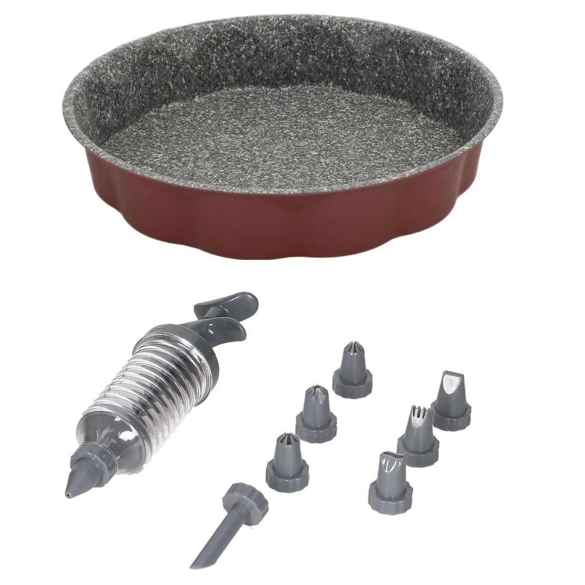 Okrągła blacha bordowa 26 cm i zestaw do dekoracji Tonana