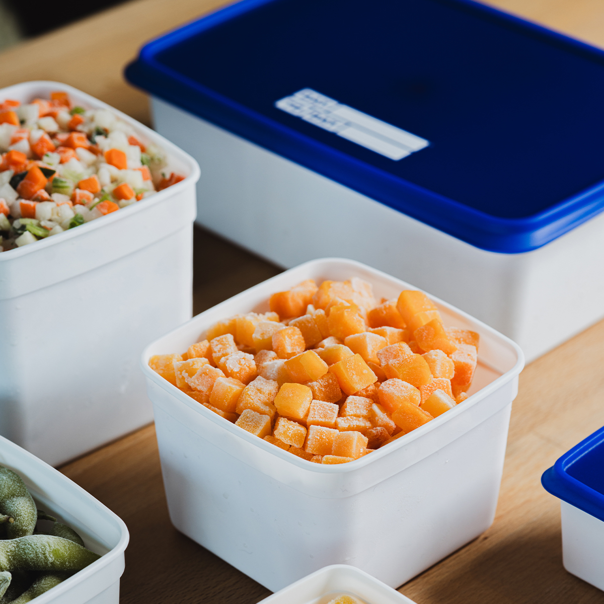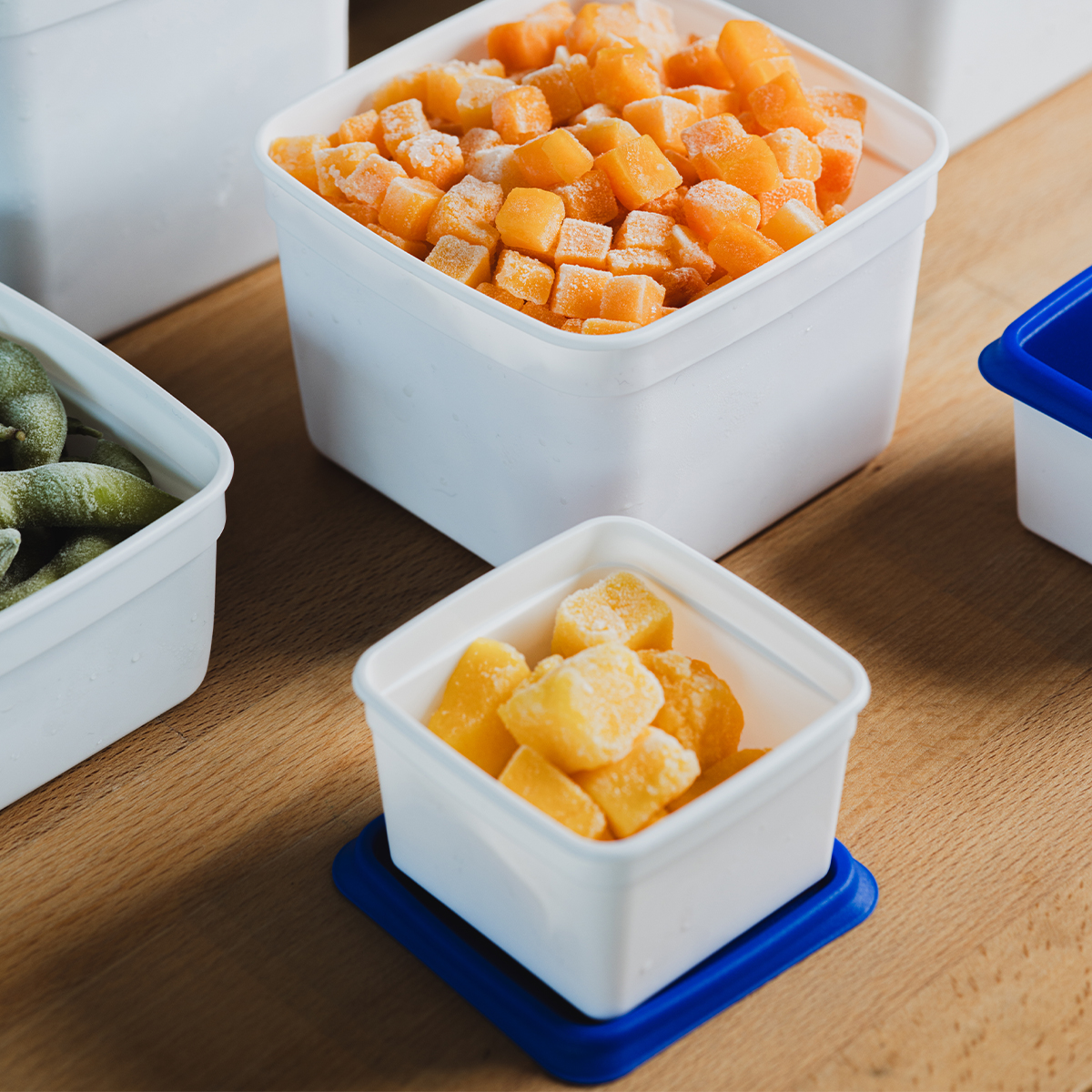 • szczelne pokrywki z miejscem do zapisania ołówkiem daty lub nazwy mrożonego produktu