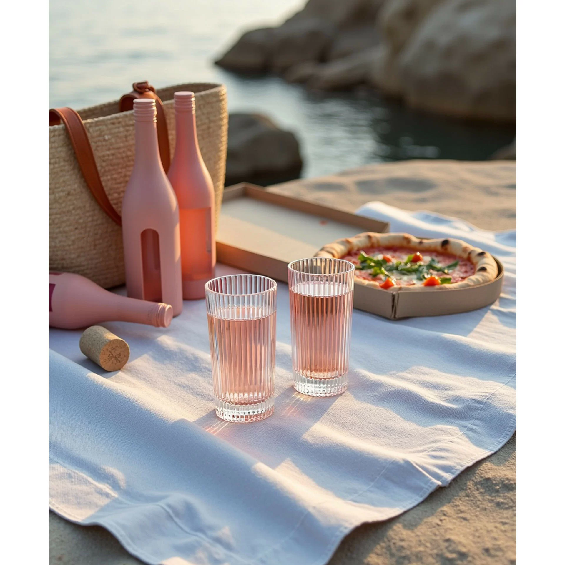Ta szklanka to nowoczesne połączenie estetyki i funkcjonalności – doskonała do codziennego użytku, jak i eleganckich okazji. Wykonana z przezroczystego poliwęglanu wysokiej jakości, zachwyca subtelnym żłobieniem, które nadaje jej wygląd zbliżony do prawdziwego szkła. Idealna do serwowania wody, soków, koktajli i innych zimnych lub ciepłych napojów.