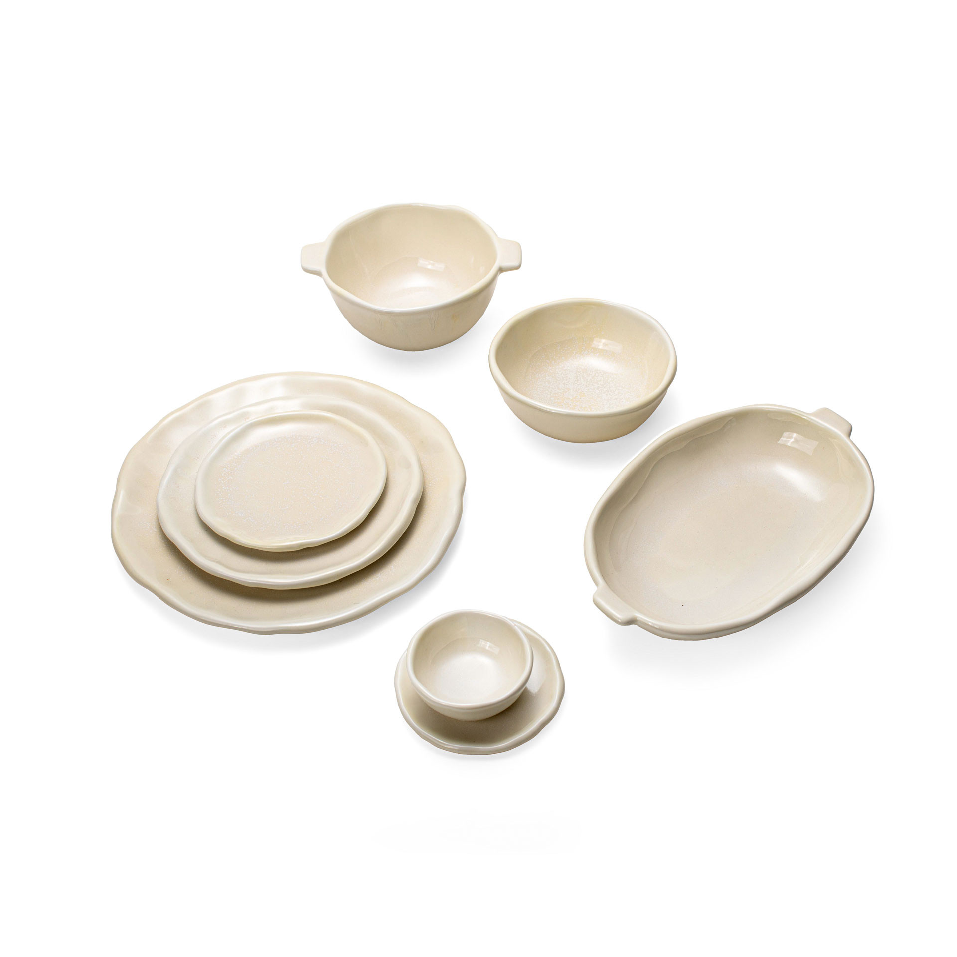 Szczególną uwagę przyciągają nieregularne ranty, które przełamują klasyczną symetrię i dodają naczyniom artystycznego wyrazu. Dzięki temu zastawa stołowa Verlo z serii Handmade Kiss idealnie łączy ponadczasową elegancję połysku z unikalnymi detalami, które nadają aranżacji stołu wyjątkowego charakteru. Sprawdzi się zarówno na co dzień, jak i podczas uroczystych spotkań, stając się wyrazistą ozdobą każdej zastawy.
