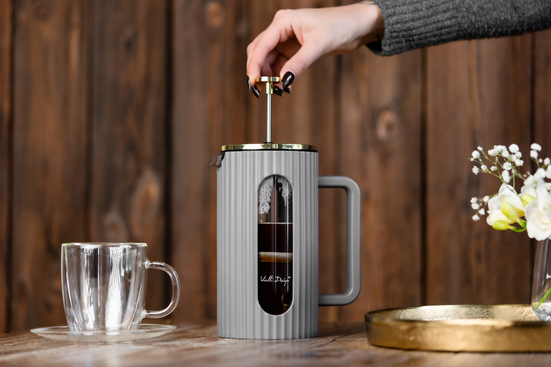 Zaparzacz do kawy i herbaty 1000 ml Livio szary Vialli Design